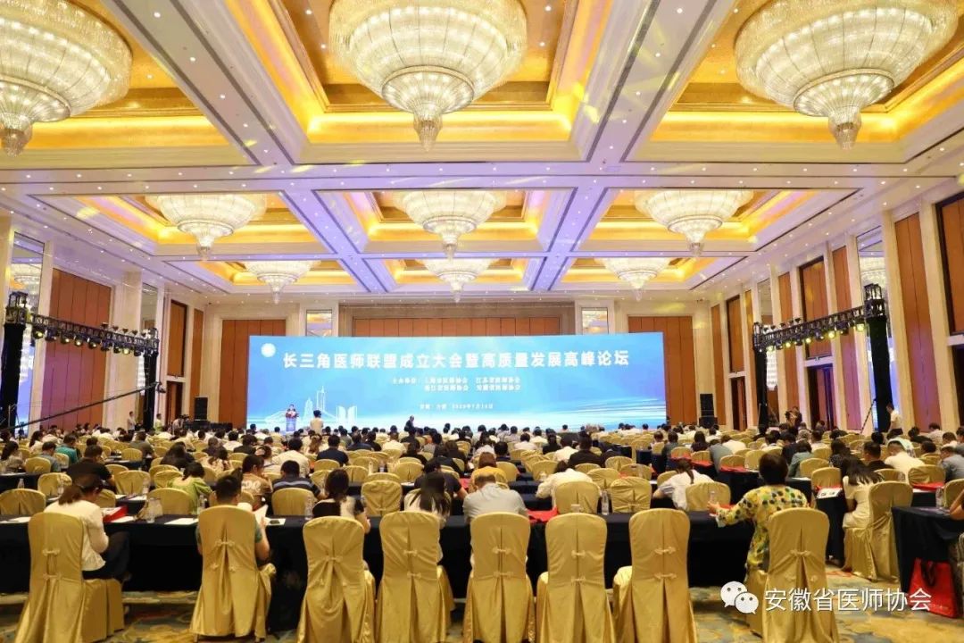 7月14日,由安徽省医师协会、上海市医师协会、江苏省医师协会、浙江省医师协会联合主办的长三角医师联盟成立大会暨高质量发展高峰论坛在合肥隆重召开。中国医师协会副会长杨民,中国工程院院士、浙江省医师协会会长郑树森教授,中国工程院院士、长海医院临床研究中心主任李兆申教授,中国科学院院士、东南大学附属中大医院院长滕皋军教授,安徽省卫生健康委党组成员、副主任杨绪斌,安徽省科协党组成员、副主席魏军锋、安徽省民政厅党组成员、副厅长张振粤,江苏省医师协会会长陈卫昌教授,安徽省医师协会会长、安徽医科大学副校长梁朝朝教授,上海市医师协会常务副会长谭鸣教授等领导和嘉宾出席会议,来自上海、江苏、浙江、安徽三省一市医师协会有关领导、医师代表及安徽省医师协会二级机构主任委员、全体理事及律师志愿团代表共计约500人参加了会议。中国科学院院士、合肥微尺度物质科学国家实验室纳米材料与化学研究部主任俞书宏教授、上海市医师协会会长徐建光教授以线上形式出席会议。成立大会由安徽省医师协会副会长鲁超、上海市医师协会秘书长田红共同主持。