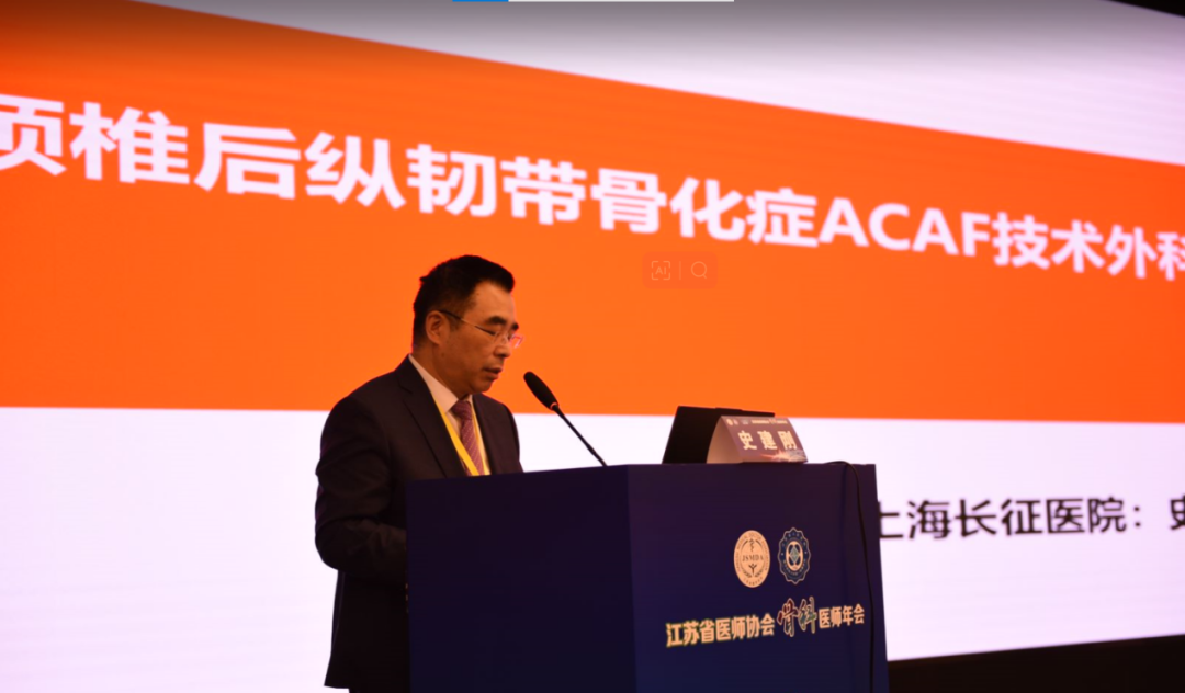 上海长征医院史建刚教授做题为“严重颈椎后纵韧带骨化外科治疗ACAF技术的研究进展”的报告。
