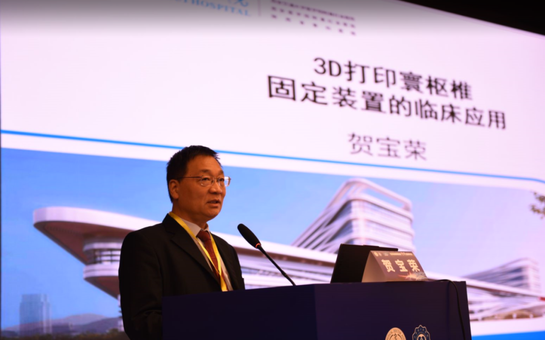 西安红会医院贺宝荣教授做题为“3D打印技术在上颈椎中的应用”的报告。