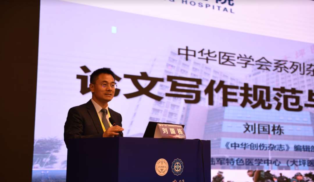中华创伤杂志刘国栋教授做题为“中华医学会系列杂志论文撰写规范与技巧”的报告。