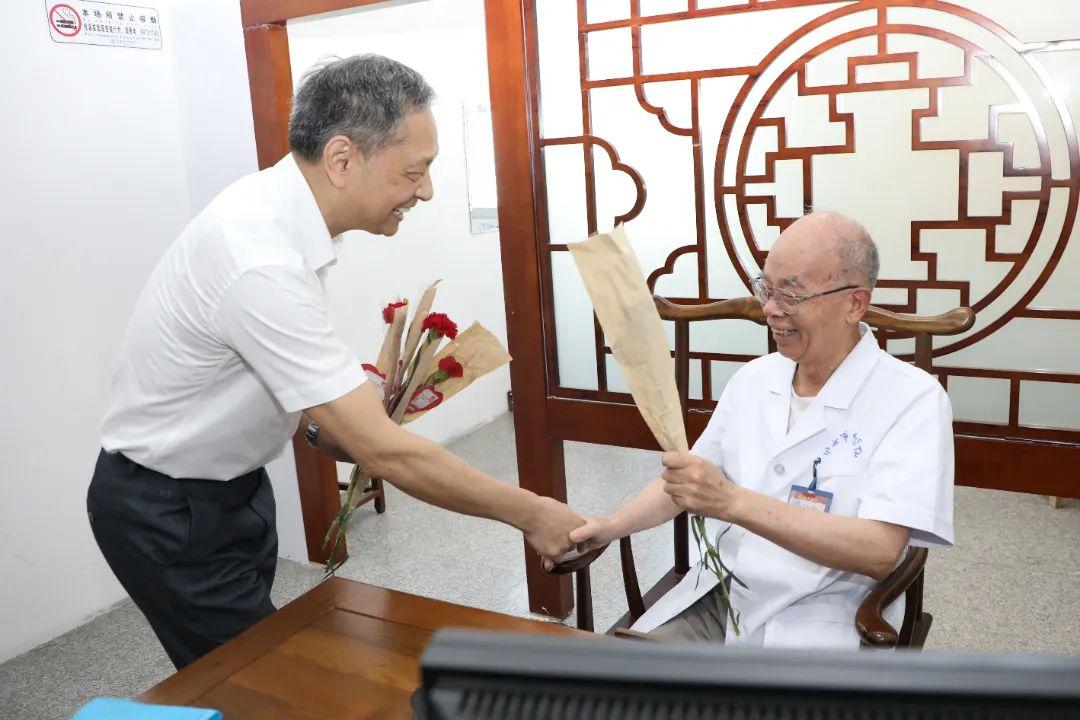 2023年8月19日是第六个中国医师节,也是党的二十大召开后的首个中国医师节。今年的节日主题是“勇担健康使命,铸就时代新功”。8月18日,江苏省医师协会联合南通市医师协会、连云港市医师协会、淮安市医师协会3家地方医师协会共同举行庆祝第六个“中国医师节”献花慰问活动,看望省内3市9家医院医师代表,向他们献上康乃馨和贺卡,让他们感受节日的温暖,并通过他们将节日的喜悦和对医师的敬意传递给全省医师。