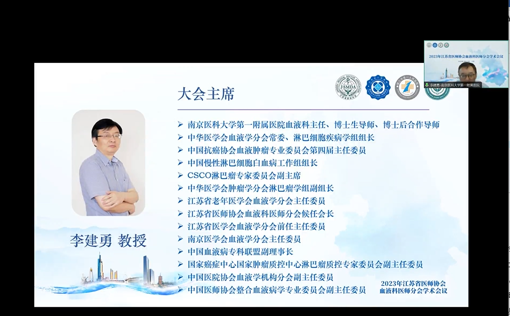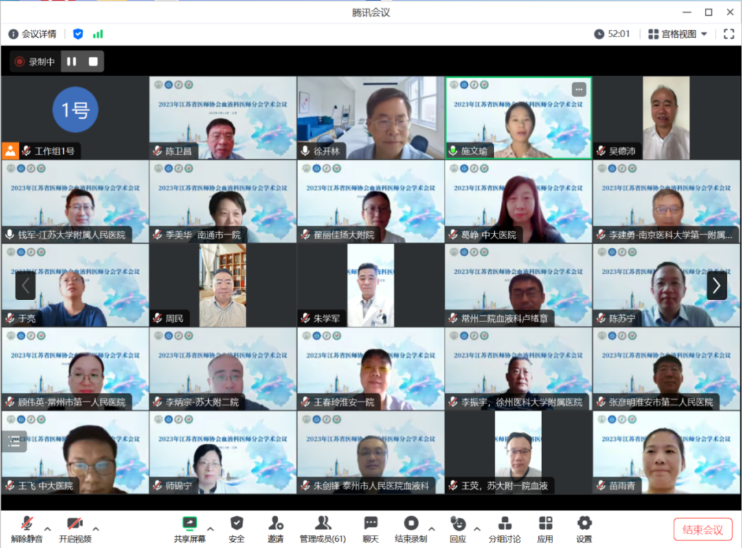 2023年9月1-3日,由江苏省医师会、江苏省医师协会血液科医师分会主办,江苏大学附属人民医院(镇江市第一人民医院)、镇江市血液病临床医学研究中心和南京医科大学第一附属医院(江苏省人民医院)承办的2023江苏省医师协会血液科医师年会在线上顺利举办。