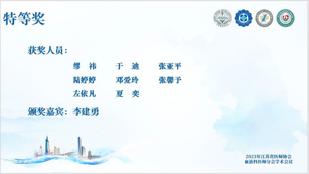 大会临近尾声,在钱军教授与施文瑜教授的主持中,大会为获奖选手进行了线上颁奖,李建勇教授进行了总结致辞。他表示:“本次大会圆满画上句号,会议内容丰富,学术讲座聚焦前沿,涵盖多个热点血液病领域的诊断及治疗进展,病例比赛精彩纷呈,体现了包括基层医院在内的江苏省血液同道优秀的水平,同时也反映了一些问题,希望后面可以做的更好。最后感谢大会优秀的组织工作,安排细致,再度感谢各界对于本次大会的大力支持。”