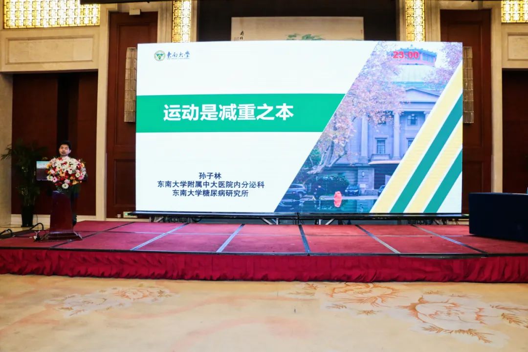 (4)东南大学二级教授、特聘教授、主任医师、博士生导师、国家重点研发计划首席科学家,东南大学糖尿病研究所所长、江苏省医学领军人才、全国优秀科技工作者孙子林教授做题为“运动是减重之本”的大会报告。
