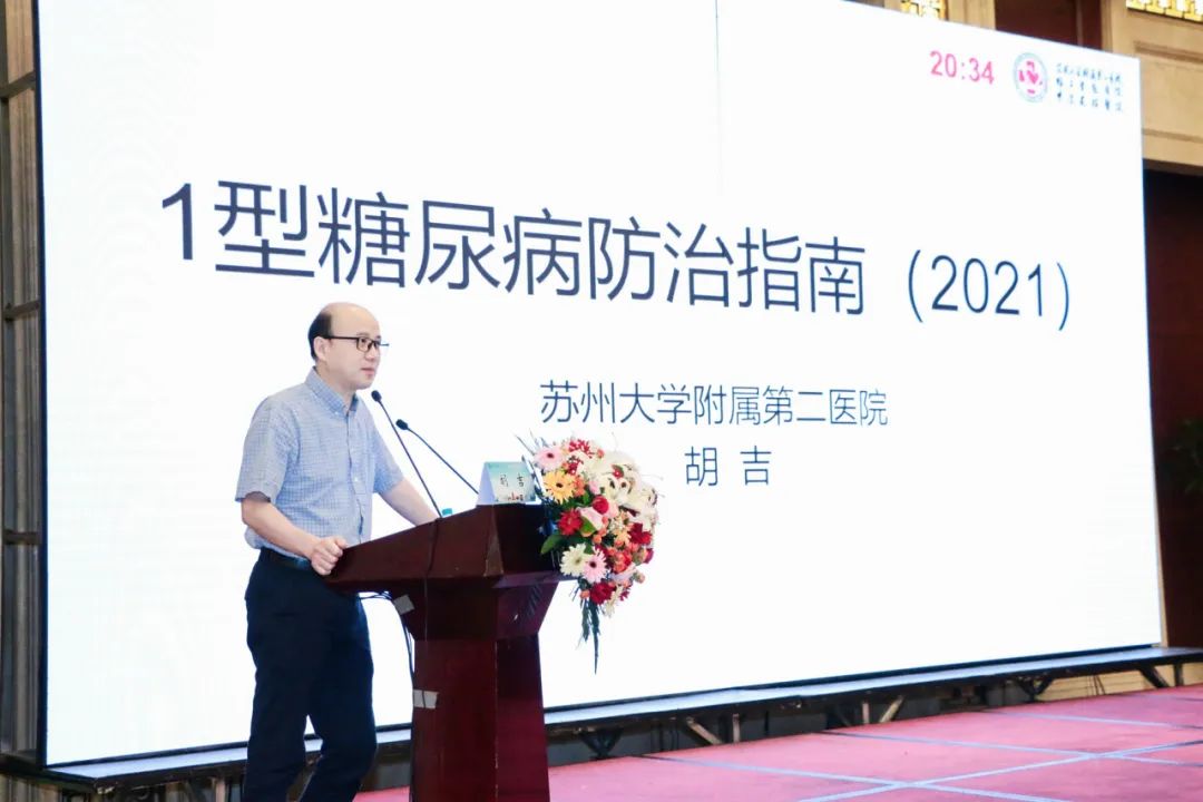 (11)苏州大学附属第二医院内分泌科主任,内科副主任,哈佛大学Joslin糖尿病中心博士后,现任中华医学会糖尿病学分会胰岛调控与再生医学学组委员、胰岛素抵抗学组委员,江苏省医学会内分泌学分会常委,江苏省中西医结合学会内分泌分会副主任委员,江苏省老年医学会内分泌专委会副主任委员,苏州市医学会内分泌学分会副主任委员胡吉教授做题为“1型糖尿病防治指南(2021)”的大会报告。