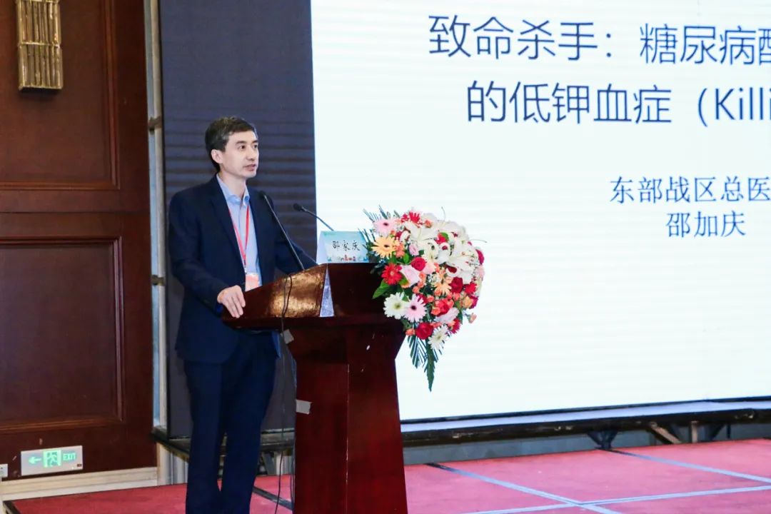 (14)东部战区总医院(原南京军区南京总医院)内分泌科主任、主任医师,南京大学、南京医科大学、南方医科大学教授、博士生导师,中国神经科学学会神经内稳态和内分泌分会常委,全军内分泌专业委员会委员,江苏省医学会内分泌学分会副主任委员邵加庆教授做题为“致命杀手(Killing K+):糖尿病酮症酸中毒的低血钾”的大会报告。
