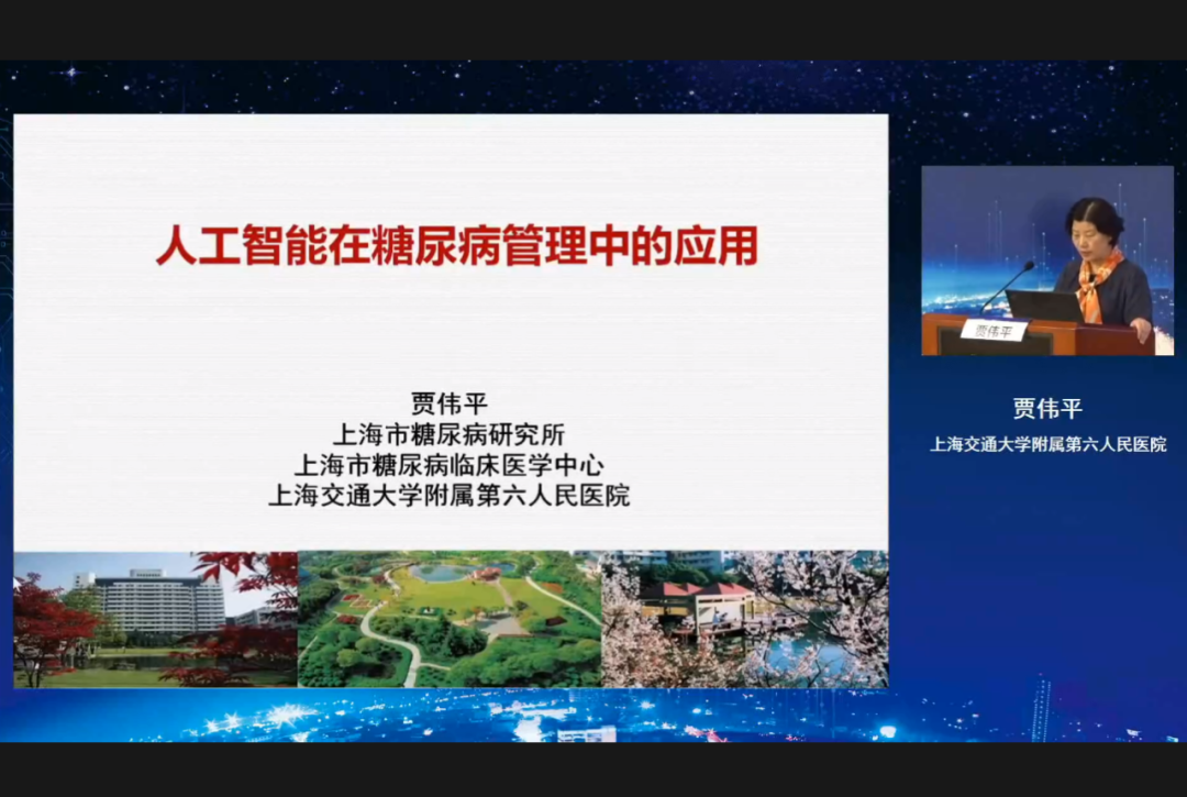 (1)中国工程院院士、中国医学科学院学部委员、973首席科学家,上海交通大学讲席教授,博士生导师,现任上海市糖尿病研究所所长,国家基层糖尿病防治管理办公室主任,上海市政府参事贾伟平教授做题为“人工智能在糖尿病管理中的应用”的大会报告。
