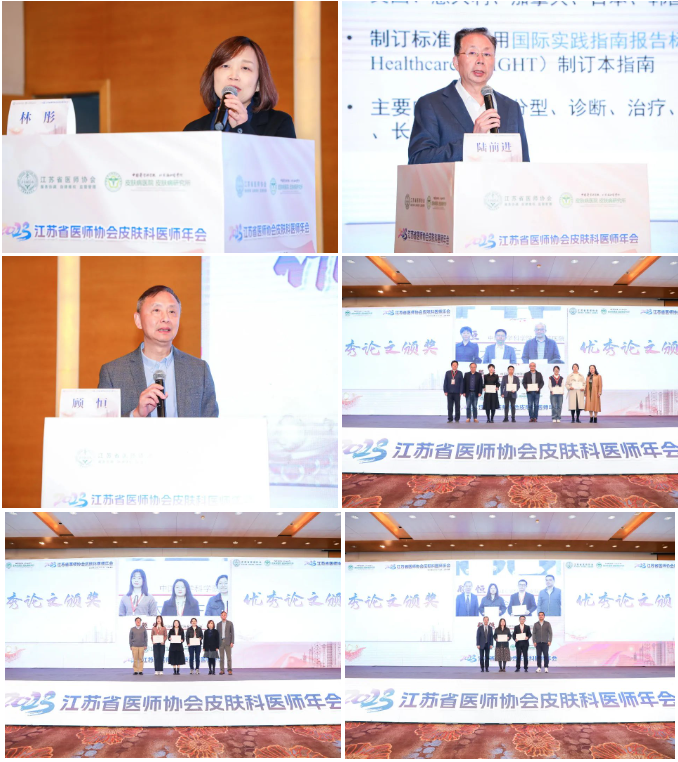 12日下午自由投稿专场邀请了江苏省年轻的青年医师对10篇优秀论文做年会发言,展示了江苏省皮肤科医师较高的临床及基础研究水平。接下来,在林彤教授的主持下,中国医学科学院皮肤病医院陆前进所长进行了“皮肤型红斑狼疮国际指南解读”的讲座,分别从皮肤型红斑狼疮的分型诊断和阶梯治疗方面讲述了不同类型皮肤型红斑狼疮的临床病理表现、诊断及鉴别诊断、临床评估及治疗选择。年会最后,中国医学科学院皮肤病医院顾恒教授主持了最佳优秀论文颁奖仪式,为获奖青年医师颁发奖状。年会结束之际,江苏省医师协会皮肤科医师分会会长孙建方教授对年会进行了总结,表达了对各方面支持的衷心感谢。据统计,本次会议共有近300名正式注册代表,同步线上直播观看超过3万人次,达到了促进省内外皮肤科医生学习交流的目的。