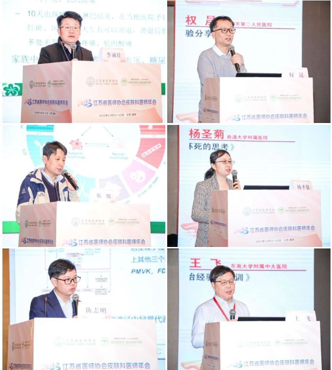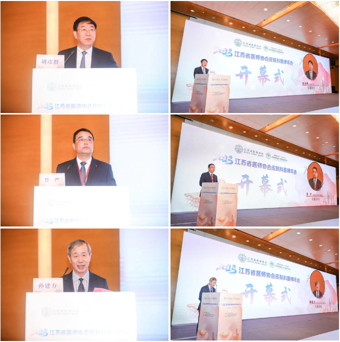 2023年11月11-12日,由江苏省医师协会主办,江苏省医师协会皮肤科医师分会、中国医学科学院皮肤病医院承办的2023江苏省医师协会皮肤科医师年会在南京顺利举办。开幕式由南京医科大学附属第一医院皮肤科主任、江苏省医师协会皮肤科医师分会候任会长鲁严教授主持。江苏省医师协会皮肤科医师分会会长孙建方教授、江苏省医师协会副会长兼秘书长刘彦群教授先后致辞,肯定了江苏省皮肤病学科的优势和地位,并表示本次年会内容丰富,涵盖基础研究和临床研究,将促进我省皮肤科事业的发展,更好服务于临床及患者,并预祝活动取得圆满成功。