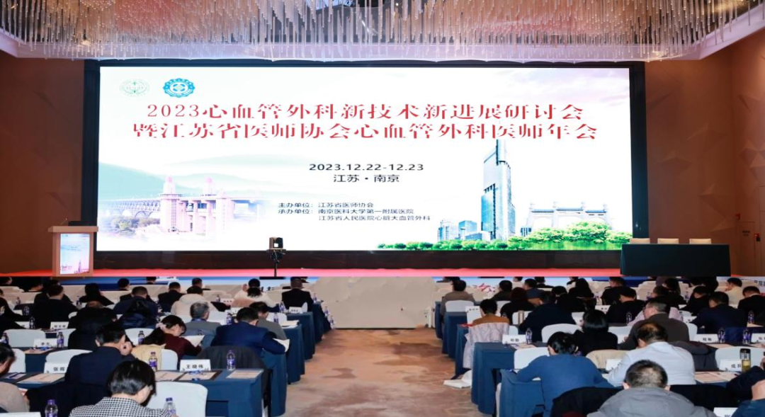 2023年12月22~24日,由江苏省医师协会、江苏省医师协会心血管外科医师分会主办,江苏省人民医院(南京医科大学第一附属医院、江苏省妇幼保健院)心脏大血管外科承办的“2023江苏省医师协会心血管外科医师年会暨心血管外科新技术新进展研讨会”在风景秀美的文化古都南京举办。会议采用线上+线下结合的方式。本次年会以 “规范、专业、科学、创新”为主题, 为心血管外科同仁提供一个相互交流、共同进步的平台,会议邀请国内外著名心血管外科及介入专家,对国际及国内最新的房颤疾病的外科治疗、微创心脏外科、主动脉夹层动脉瘤的最新手术及介入治疗技术的新进展进行系统介绍,共同探讨心血管外科手术的发展方向和前景,促进规范化治疗。同时各位专家学者在大会上进行学术讲座及手术视频演示,为大家献上了一场精美、丰富的学术盛宴。