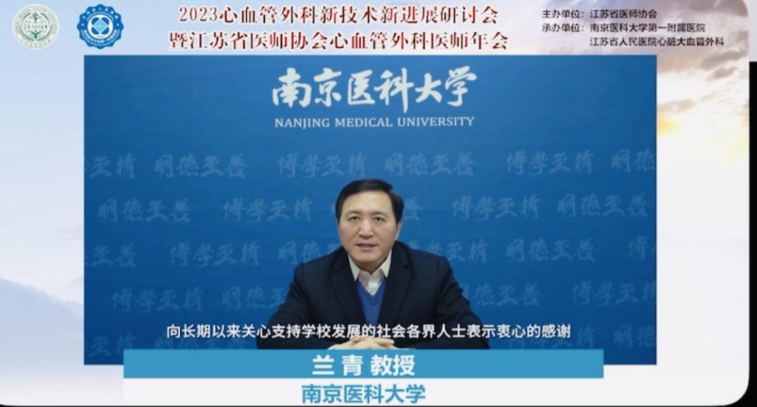 兰青书记代表南京医科大学向本次年会的举办表示热烈的祝贺并指出,本次会议是学习贯彻落实党的二十大精神,推进卫生健康事业发展的一次鲜活的实践,也是践行立德树人任务,培育高层次医药人才的一次学术盛宴。心有所信方能行远,优化医学人才培养结构,全面提升院校医学人才培养质量,成为医学教育改革的重点。一直以来,学校重健康重教育,既立德树人又治病救人。南京医科大学第一附属医院是南京医科大学临床医疗和教学的重要基地,也是省内最早一批开展心血管外科疾病治疗、 教学、科研的医院。目前心血管疾病已经成为威胁我国公众健康的重大疾病,发病率逐年上升,关注心血管疾病迫在眉睫,提高诊疗水平刻不容缓。本次研讨会聚焦心血管外科学科的前沿进展,为大家搭建了一个共享、共建、共赢的学术交流平台。愿大家一道携手并进,为更好的服务患者,服务江苏健康卫生事业作出更大贡献。