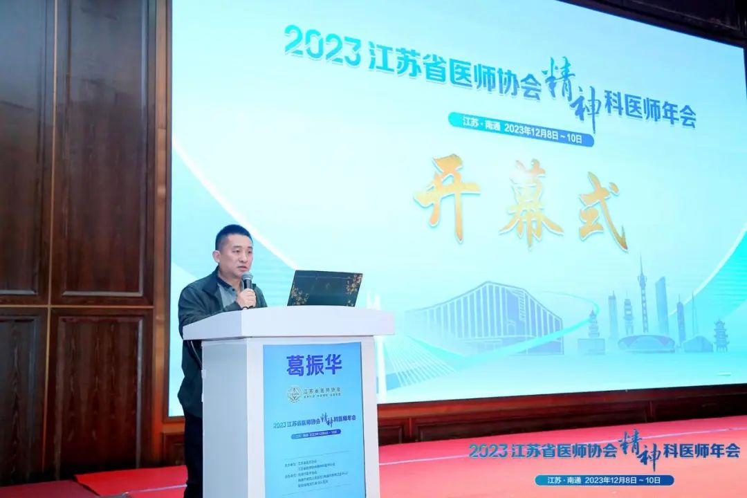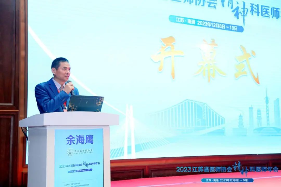 开幕式由联勤保障部队第904医院高志勤主任主持。江苏省医师协会精神科医师分会会长余海鹰教授、南通市第四人民医院葛振华书记、南通市卫健委张兵主任、江苏省医师协会王跃副秘书长等分别致辞。