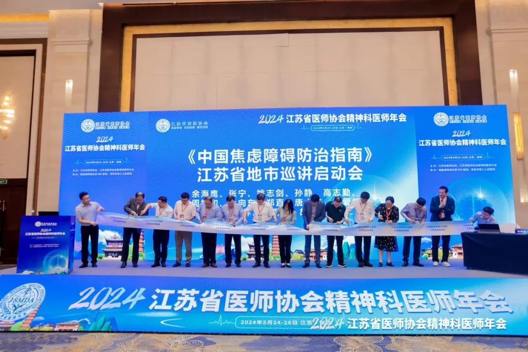 会上还进行了《中国焦虑障碍防治指南》江苏省地市巡讲启动会,余海鹰教授、张宁教授、姚志剑教授、孙静教授、高志勤教授、周振和教授、杜向东教授、郑直教授、唐小伟教授、周爱华教授、陈振林教授、杨泗学教授、胡亚兰教授参加了剪彩仪式。