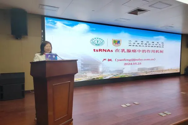最后由江苏省肿瘤医院检验科主任严枫带来了《tsRNAs在乳腺癌中的作用机制》讲座,介绍了tsRNAs在乳腺癌中的作用机制。她讲述了tsRNAs作为新型液体活检Biomarker的潜力,并展示了其在乳腺癌早期检测中的优势。通过高通量测序和生物信息学分析,严枫教授发现了多种与乳腺癌相关的差异表达tsRNAs,并探讨了其在细胞增殖、迁移和侵袭中的具体作用机制。这些研究为乳腺癌的早期诊断和靶向治疗提供了新的理论依据和潜在靶点。报告由江阴市医学会检验学分会主任委员王珂教授主持。