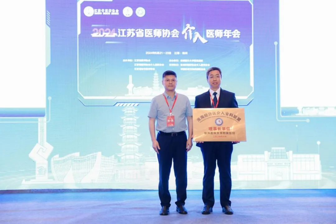 (徐州医科大学附属医院介入科主任张庆桥教授、徐州医科大学附属医院介入科徐浩教授、祖茂衡教授为常务理事单位授牌)