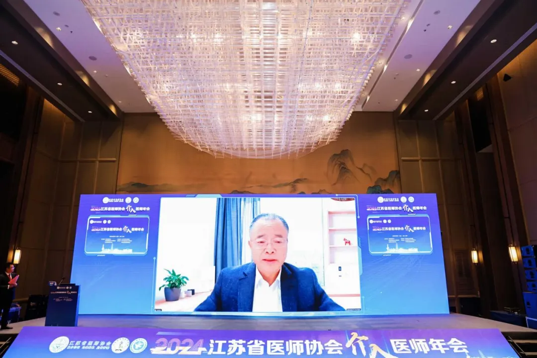 中国科学院院士、东南大学中大医院院长滕皋军教授代表中国医师协会介入医师分会对年会顺利召开表示热烈祝贺。他在致辞中提到,介入医学在国内经过40余年的发展,已成为继内科治疗和外科治疗之后的第三大临床治疗手段。李麟荪教授开创了江苏的介入医学事业,江苏介入医师继往开来,团结创新、砥砺前行。本次年会为介入医师们提供了学术交流大平台,希望江苏介入医师们为推动中国介入医学事业的发展作出新的贡献。
