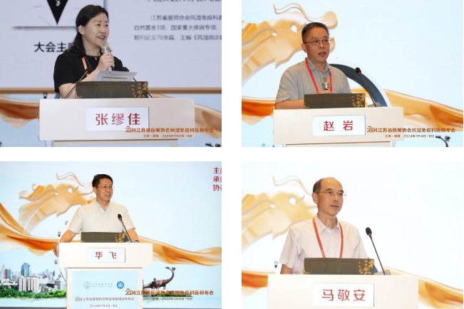 中国医师协会风湿病学分会副会长赵岩教授、常州市第一人民医院(苏州大学附属第三医院)党委书记华飞教授、江苏省医师协会马敬安副秘书长莅临会议并致辞。会议由江苏省人民医院(南京医科大学第一附属医院)、江苏省医师协会风湿免疫科医师分会会长张缪佳教授主持。