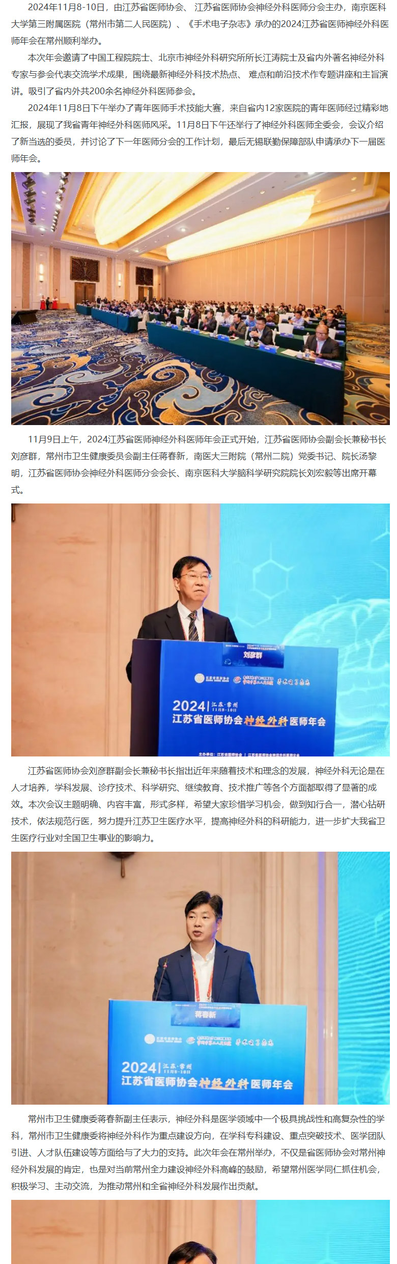 【年会动态】2024江苏省医师协会神经外科医师年会在常州顺利举办