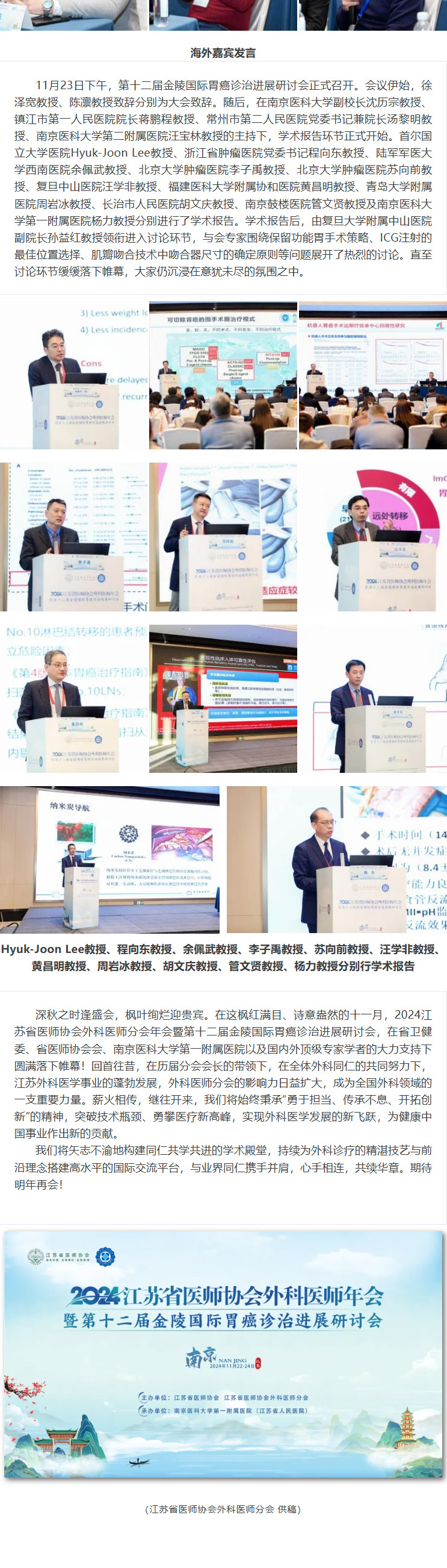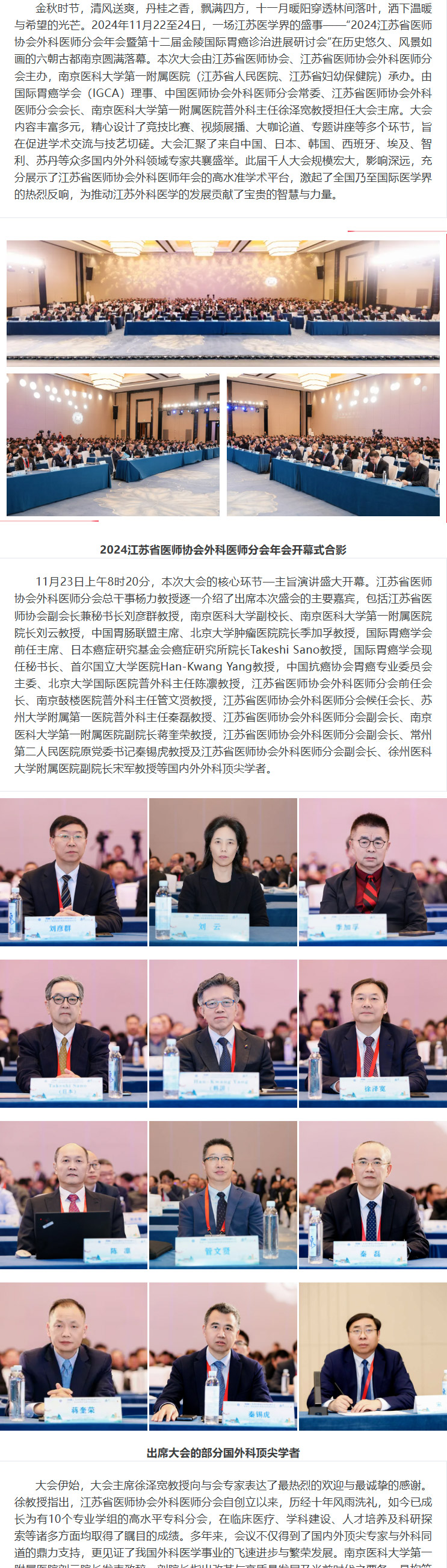 【年会动态】2024江苏省医师协会外科医师年会暨第十二届金陵国际胃癌诊治进展研讨会在南京顺利举办