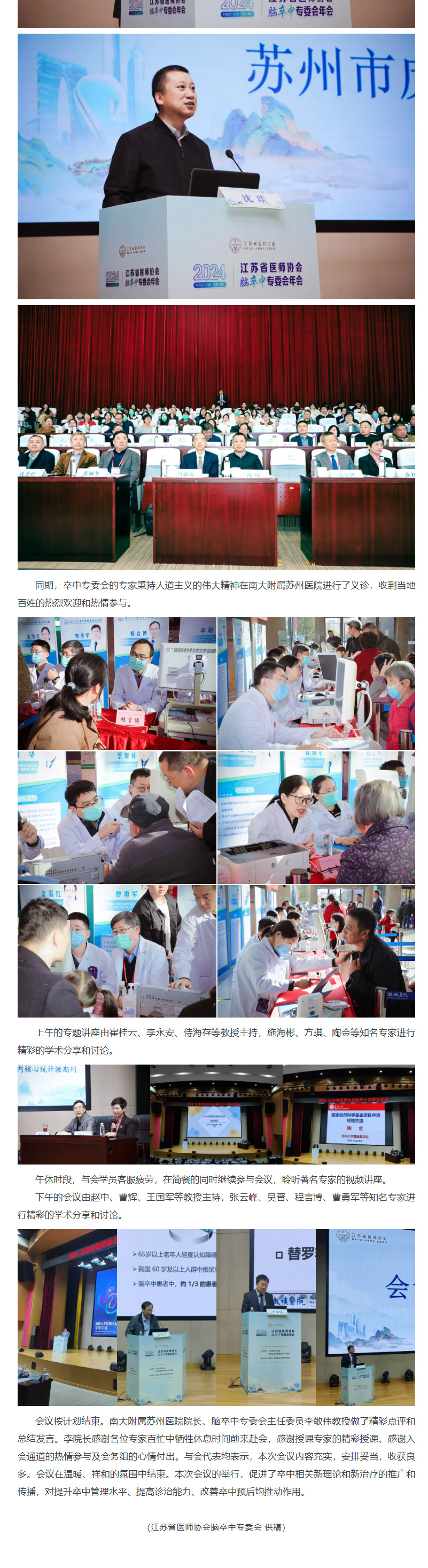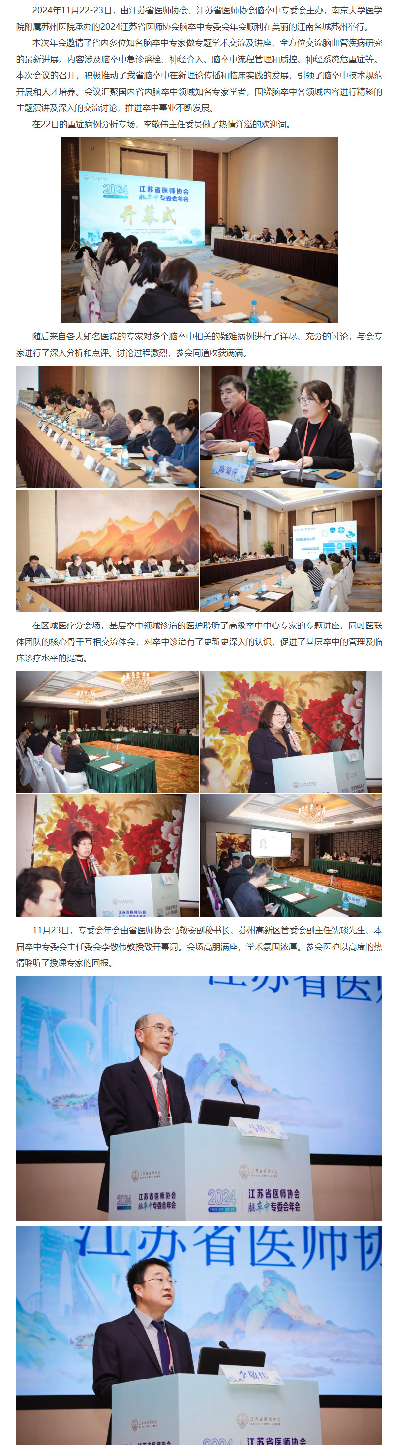 【年会动态】2024江苏省医师协会脑卒中专委会年会在苏州顺利举行