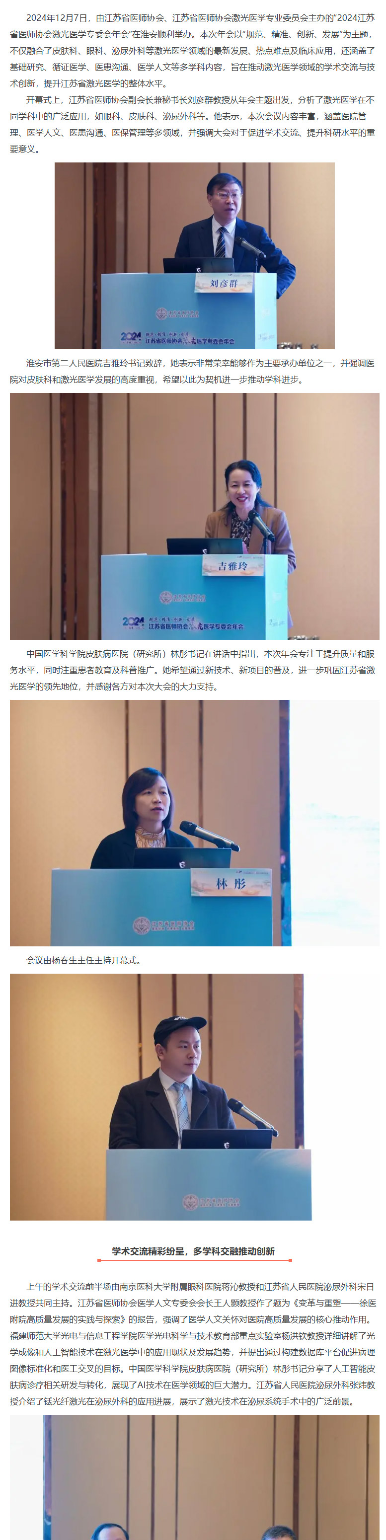 【年会动态】2024江苏省医师协会激光医学专委会年会在淮安顺利举办