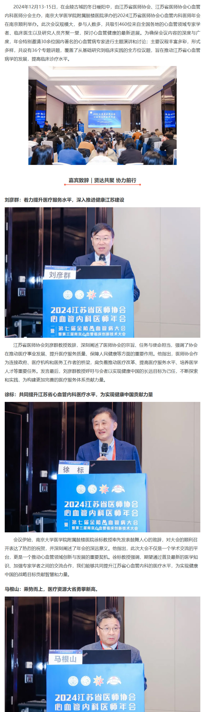 【年会动态】2024江苏省医师协会心血管内科医师年会在南京顺利举办
