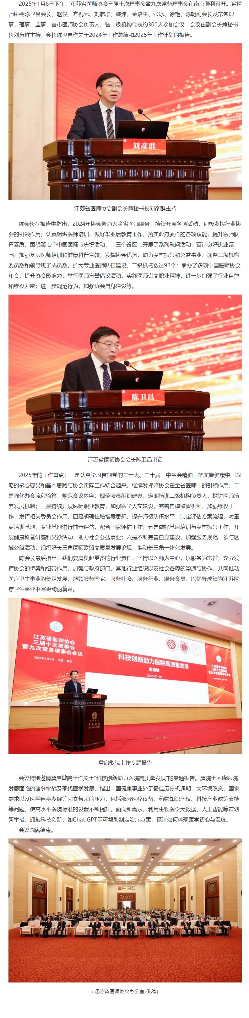 江苏省医师协会三届十次理事会暨九次常务理事会在宁召开