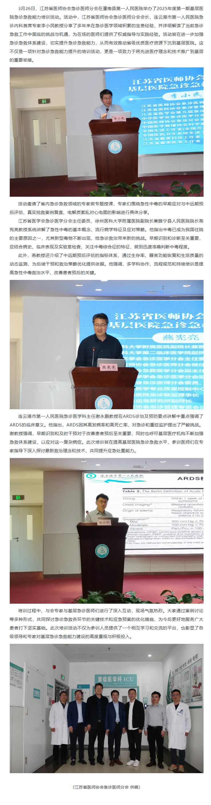 【走入基层】江苏省医师协会急诊医师分会基层医院急诊能力培训活动—灌南站顺利举行
