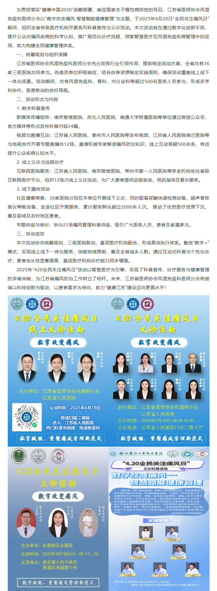 【公益科普】数字改变痛风 智慧赋能健康管理——2025年江苏省“4.20全民关注痛风日”活动
