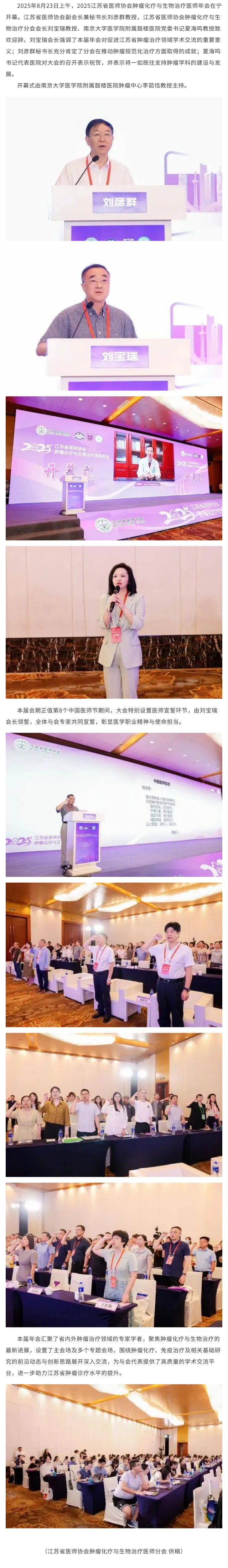【年会动态】2025江苏省医师协会肿瘤化疗与生物治疗医师年会在宁成功举办