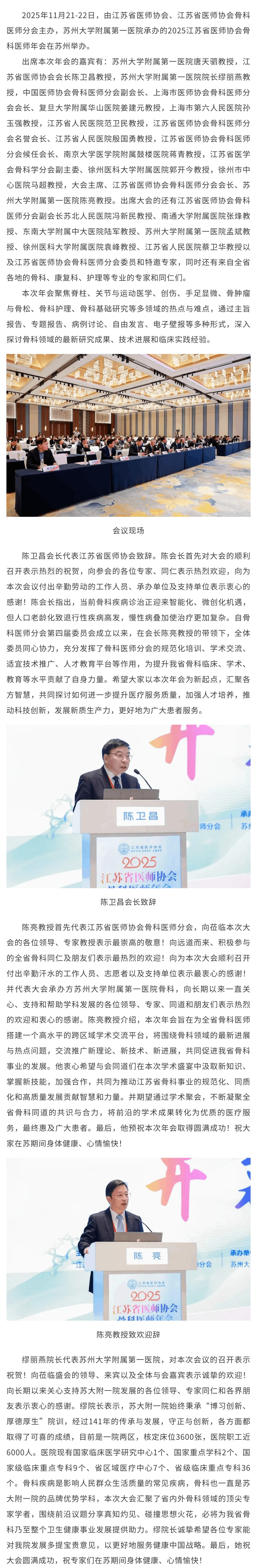 【年会动态】2025江苏省医师协会骨科医师年会在苏州顺利举办