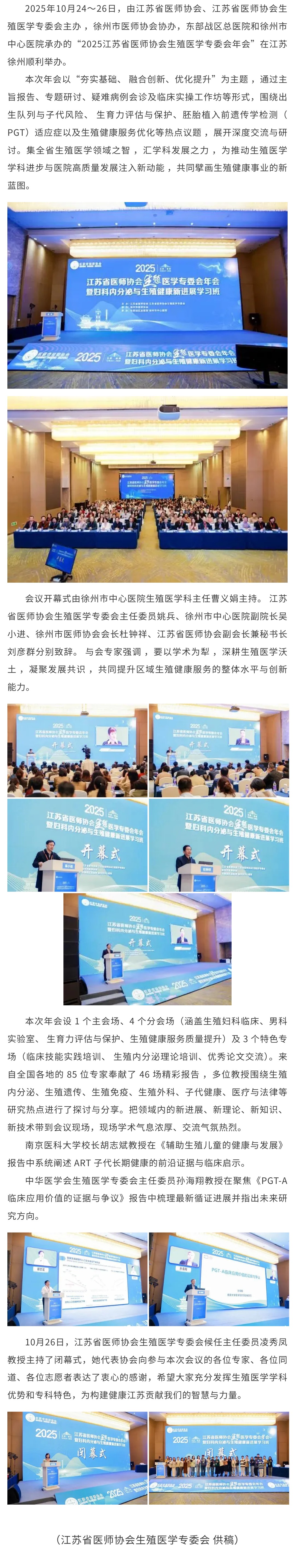 【年会动态】2025江苏省医师协会生殖医学专委会年会在徐州顺利举办