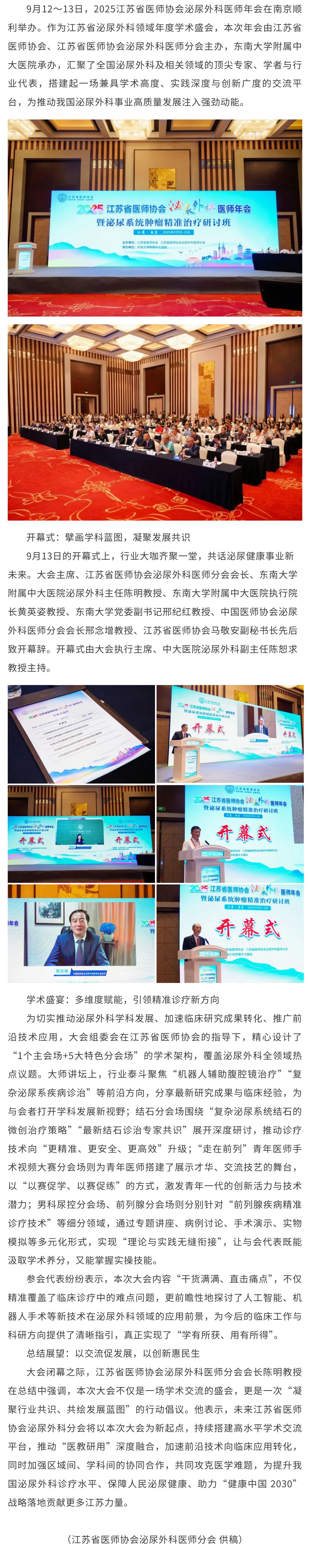 【年会动态】聚力创新启新程,共筑泌尿健康梦--2025江苏省医师协会泌尿外科医师年会在南京顺利举办