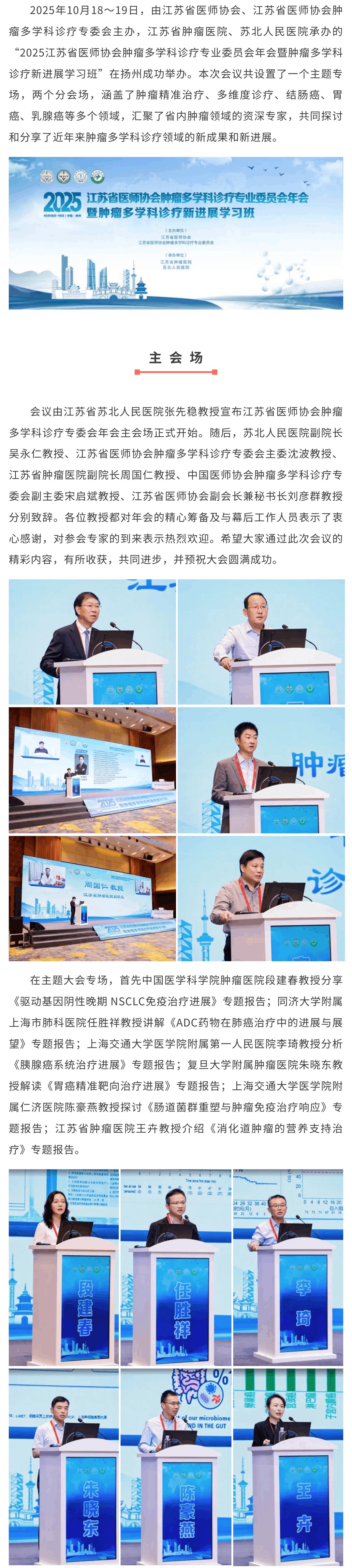 【年会动态】2025江苏省医师协会肿瘤多学科诊疗专业委员会年会暨肿瘤多学科诊疗新进展学术班在扬州顺利举办